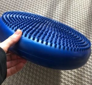 This is a seat cushion that I use to stand on for short bouts of dancing. It gives a nice foot massage. For sitting it helps to engage the small stabilizing muscles around the lower back and sacrum as you have to find your balance with it. Dancing on this soft surface is gentle on the joints and gets the lymphatic system working. Lymph needs movement in order to function and since its function is getting wastes to the elimination organs for removal, I am keen to support it working well. One more toy for the toy box!